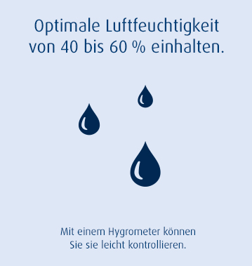 | Raum | Optimale Temperatur | Optimale Luftfeuchtigkeit |