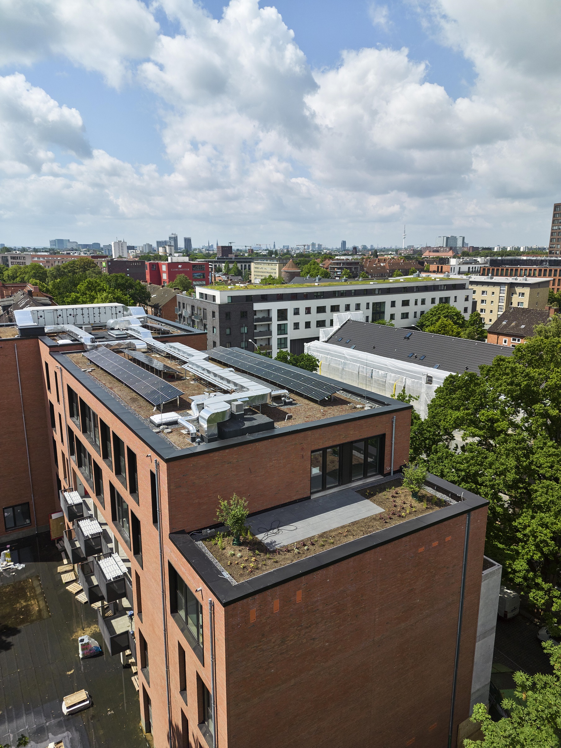 An den Eisspeicher sind sowohl der Neubau mit der HANSA-Zentrale und die 14 Neubauwohnungen als auch die Bestandsgebäude Starstraße 11-25 angeschlossen.