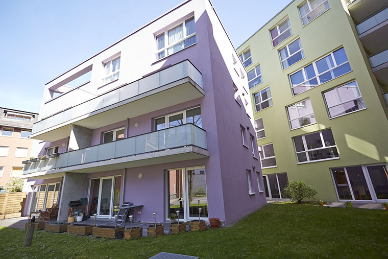 Die Wohnanlage liegt zentral und dennoch fern vom Großstadttreiben an einer ruhigen Anliegerstraße mit Tempo-30-Zone. An dieser Straße wurde im Jahre 1982 der öffentlich geförderte Bau der Alexanderstraße 12 errichtet. Die Wohnungen in der Alexanderstraße 14 wurden als Hofbebauung mit hochwertiger Ausstattung in 2009 erbaut. In diesem Innenhof befindet sich außerdem ein vom Verkehr abgeschirmter Spielplatz. Der Stadtteil St. Georg liegt in der Innenstadt mit allen damit verbundenen Vorteilen. Läden, Schulen, öffentliche Verkehrsmittel, kulturelle Einrichtungen usw. befinden sich in unmittelbarer Umgebung. Zur Alster, zum Hauptbahnhof und zur Mönckebergstraße sind es nur wenige Minuten Fußweg.