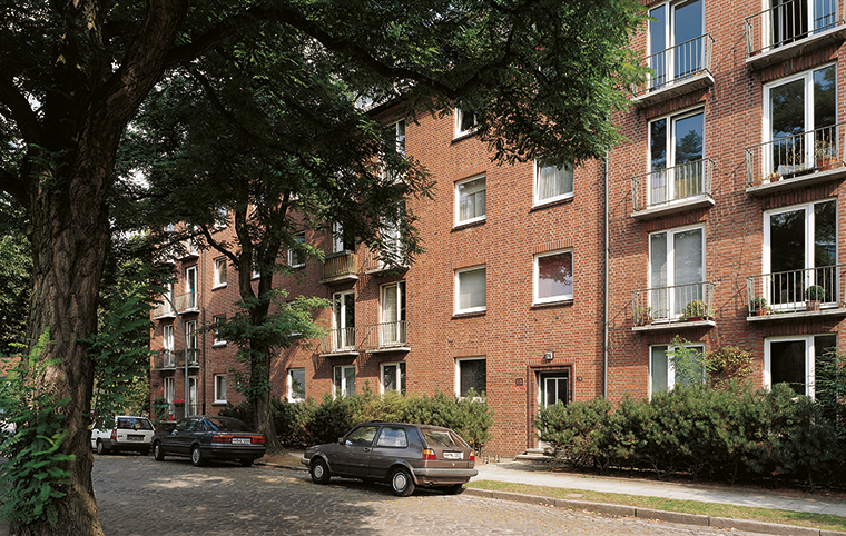 Diese im Kriege zerstörte Wohnanlage wurde im Jahre 1952 wieder aufgebaut. Zentral und dennoch sehr ruhig liegt sie in der Nähe des Osterbekkanals in Barmbek-Süd. Gute Einkaufsmöglichkeiten gibt es durch nahegelegene Verbrauchermärkte und im Einkaufszentrum Hamburger Straße. Alle Schulformen, Sportplätze und Kindergärten sind in wenigen Minuten erreichbar. Die Verkehrsanbindung durch U-Bahn und diverse Bus-Linien zur Innenstadt ist sehr gut. Der nahegelegene Stadtpark bietet vielfältige Freizeitmöglichkeiten