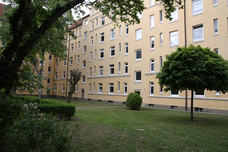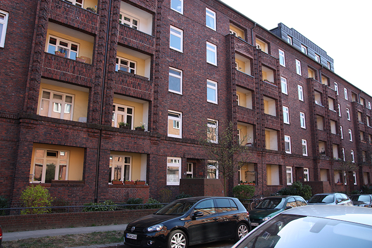 Diese im Kriege zerstörte Wohnanlage wurde im Jahre 1952 wieder aufgebaut. Zentral und dennoch sehr ruhig liegt sie in der Nähe des Osterbekkanals in Barmbek-Süd. Gute Einkaufsmöglichkeiten gibt es durch nahegelegene Verbrauchermärkte und im Einkaufszentrum Hamburger Straße. Alle Schulformen, Sportplätze und Kindergärten sind in wenigen Minuten erreichbar. Die Verkehrsanbindung durch U-Bahn und diverse Bus-Linien zur Innenstadt ist sehr gut. Der nahegelegene Stadtpark bietet vielfältige Freizeitmöglichkeiten