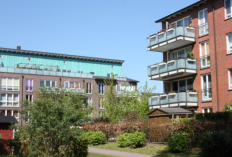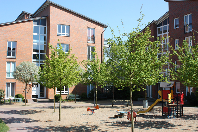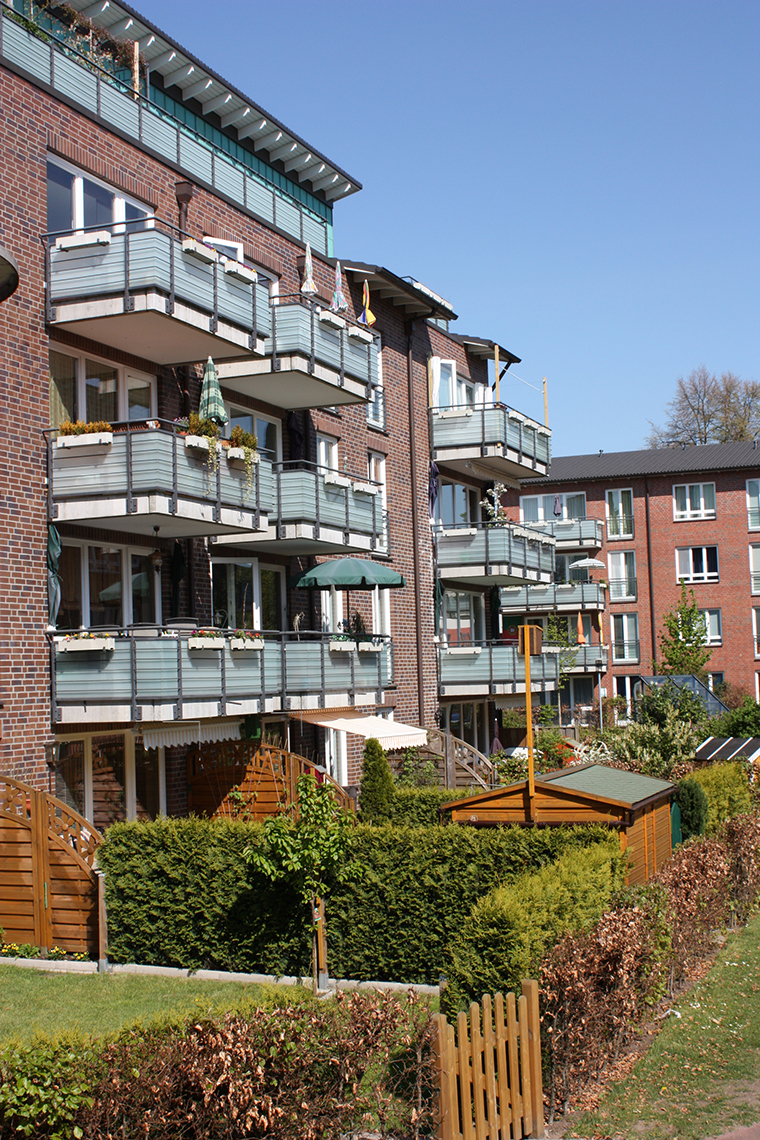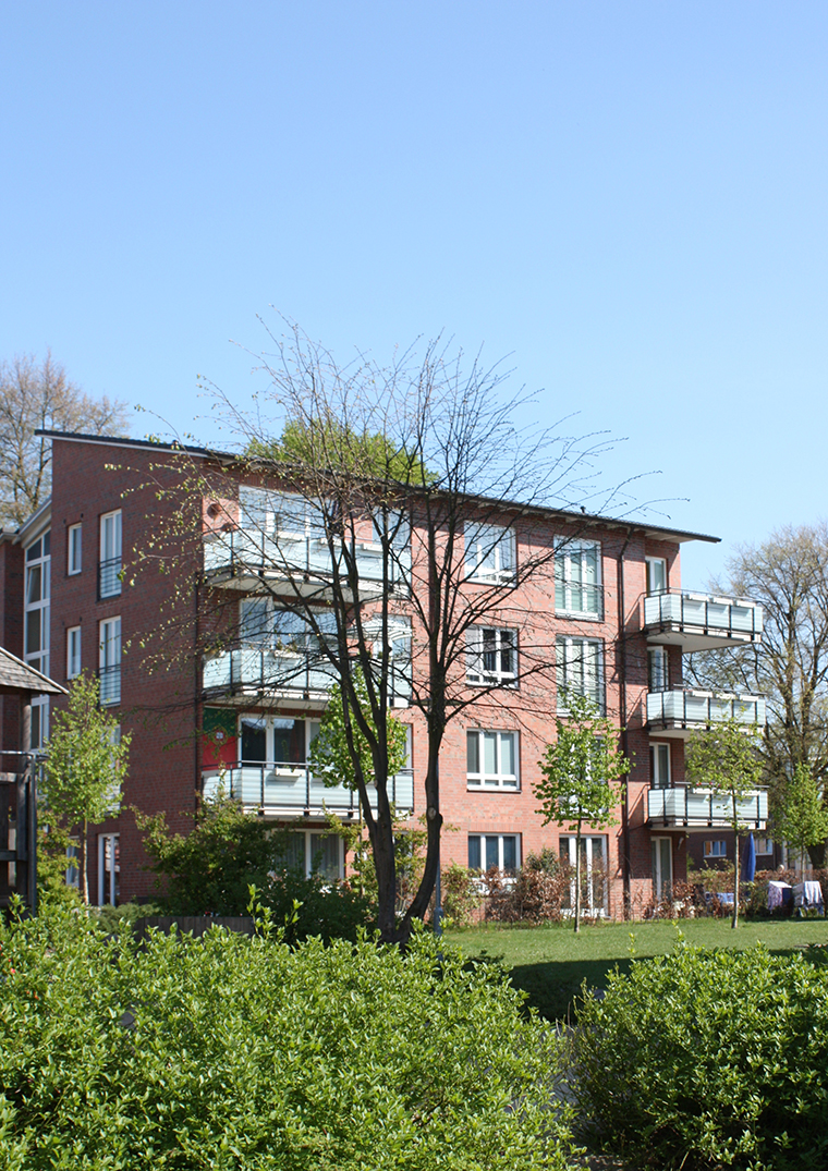 Die familienfreundliche Wohnanlage ist von Reihenhäusern umgeben und liegt direkt beim Naturschutzgebiet Höltigbaum. Tiefgaragenstellplätze sind vorhanden. Einkaufsmöglichkeiten, Kindergärten und Schulen befinden sich in unmittelbarer Umgebung. Busverbindungen liegen direkt vor der Tür. Die Bahnstation Rahlstedt (RB 81) ist ca. 1,5 km entfernt. Durch die nahegelegene (4 km) Autobahnauffahrt Stapelfeld besteht eine gute Anbindung zur Ostsee.