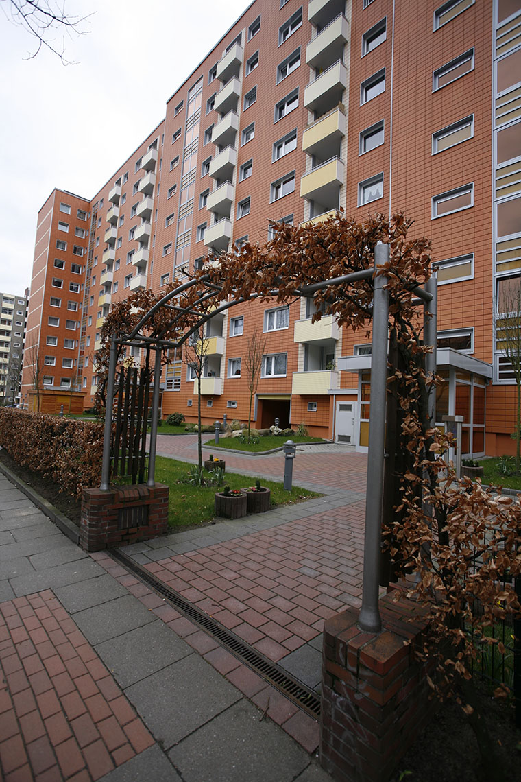 Die Wohnanlage liegt im Zentrum von Steilshoop. Gegenüber befindet sich das Einkaufszentrum Steilshoop mit guten Einkaufsmöglichkeiten. Weitere Geschäfte, Schulen, Kindertagesstätten, das Hallenbad Bramfeld sowie der Bramfelder See befinden sich in unmittelbarer Umgebung. Der Hamburger Stadtpark ist ca. 3 km entfernt und bietet viele Möglichkeiten für Freizeitaktivitäten. Durch diverse Buslinien haben Sie eine gute Anbindung zum S- und U-Bahnhof Barmbek.